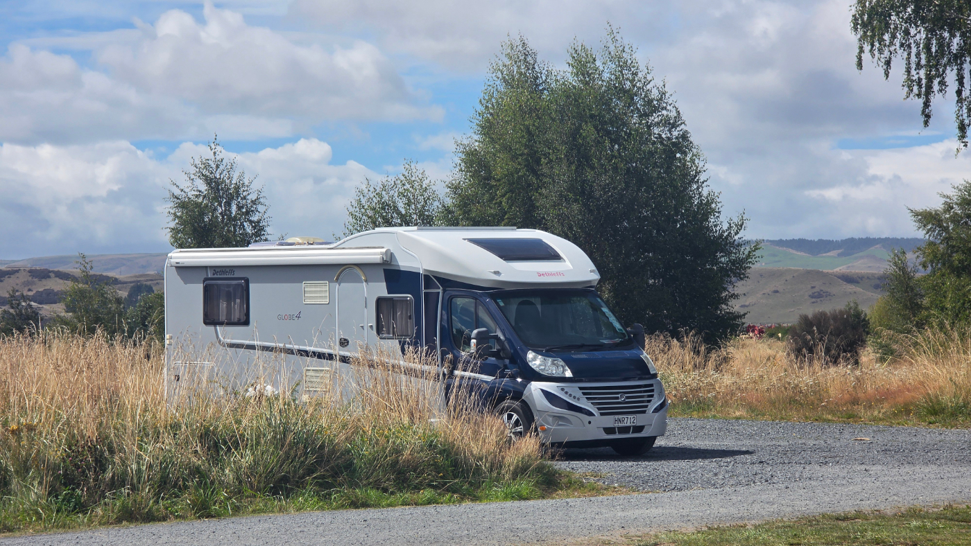 We stopped in at Turangi on the way down and parked up in the corner. The sun was shining, and we were already starting to slip into party mode.