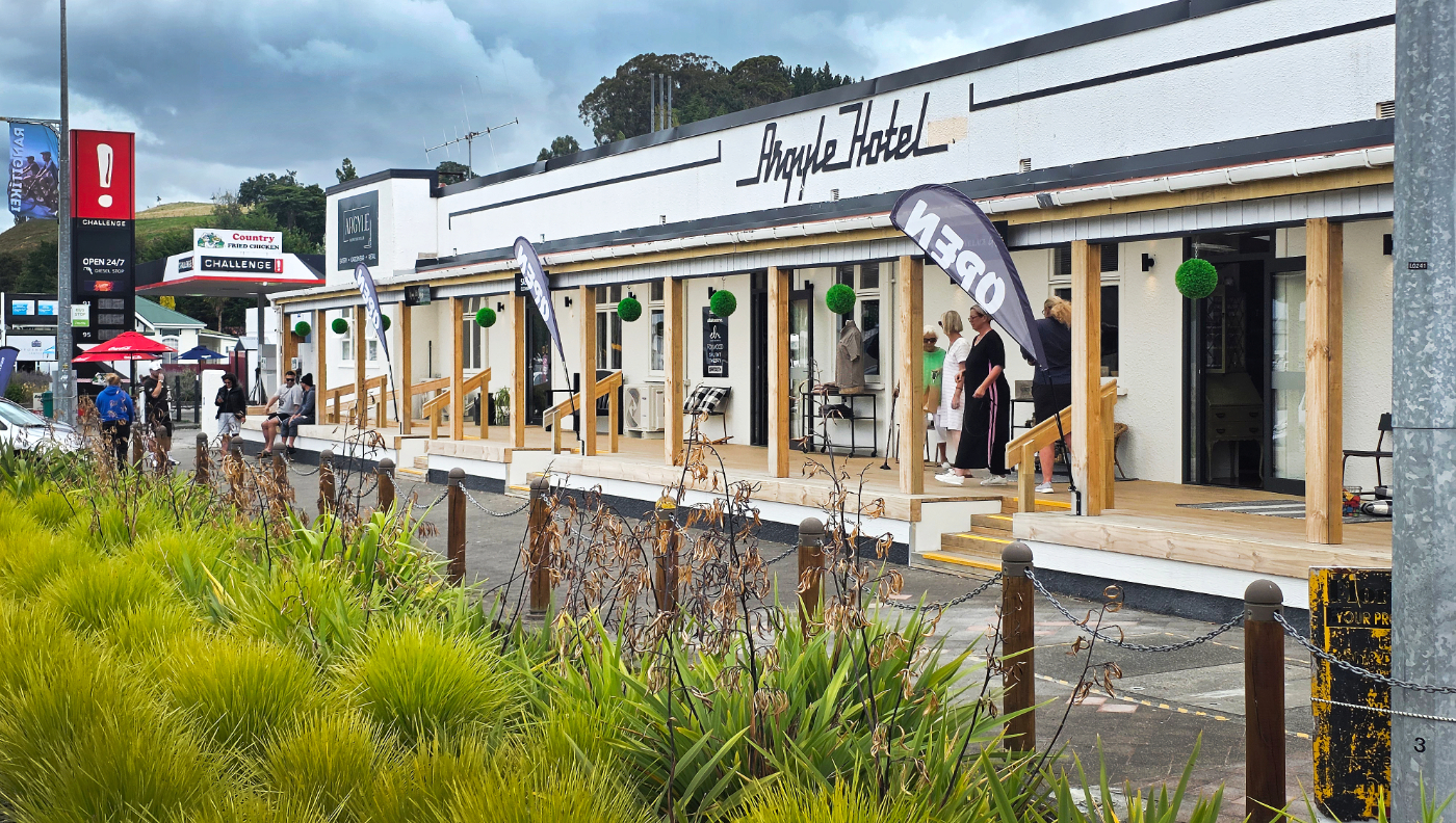 A bit further down the road we stopped at Hunterville. What an amazing little town. There’s been a fantastic community effort to help the local publican rebuild the Argyle Hotel on the corner. Spare bedrooms have been converted into boutique retail shops, each accessed from a new verandah facing SH1. What a brilliant way to regenerate business and bring life back into the building. We also heard it’s soon to be set up as a Park Over Property for motorhomes.