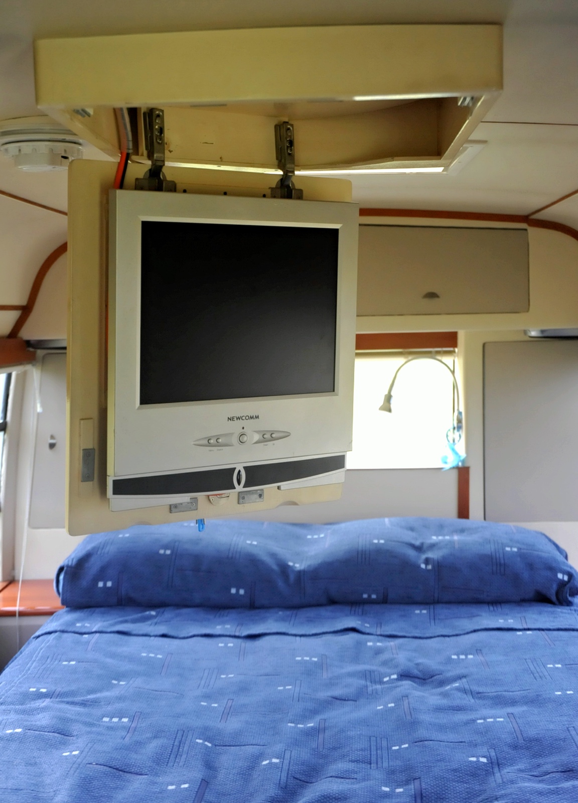The swivel tv above the bed