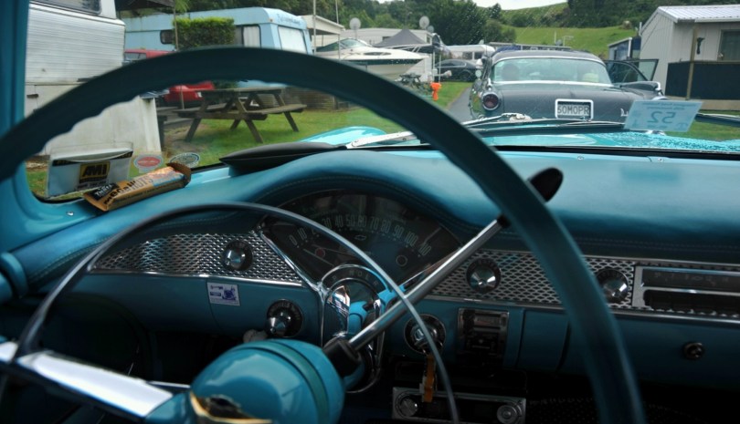 Rotoiti February 6, 2016 1600 × 919 Classic Cars and Boats Looking through the dash of the 56 Chev to the Dodge as we left for lunch