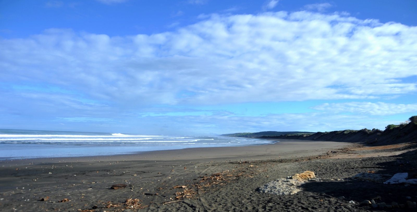 Port Waikato March 3, 2016 1600 × 815 Tom and Erin’s retro Mitzi Sunset beach looking up towards Manukau