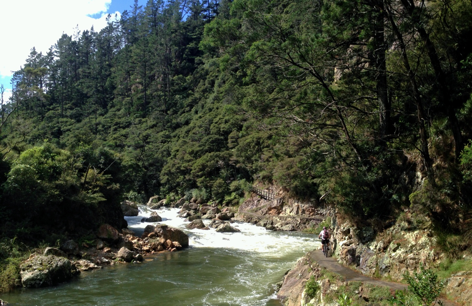Waihi March 28, 2016 1600 × 1040 Nicks and Scratches The narrow bit. Gary on his bike on the right. The girls were further around.