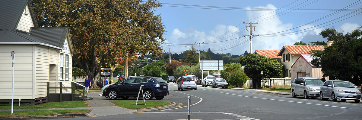 Mangawhai April 5, 2016 1200 × 401 At the end of the road The main street of Mangahwai. Bennett’s chocolate factory on the right