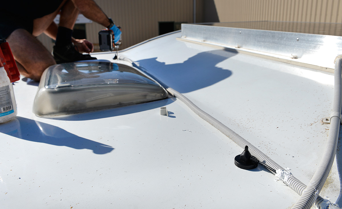 wifi April 27, 2016 1200 × 732 LTE 4G Aerial Installation on a Motorhome Phil screwing down the port side aerial base