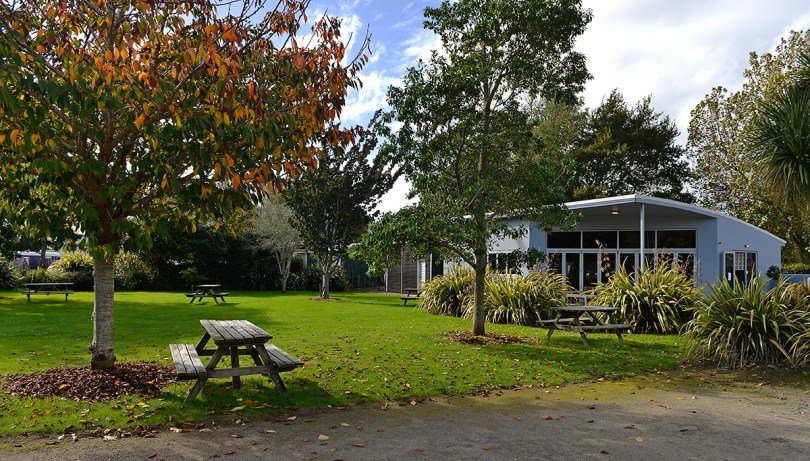 The cafe at the front.