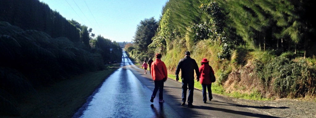 Katikati June 6, 2016 1024 × 382 The Route March On the way to Katikati. Dianne, Gary and Fiona. Rob and Chloe in front.