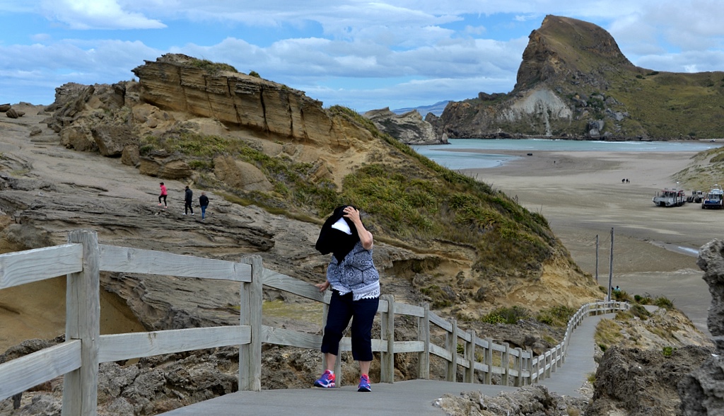 As we walked down the beach towards Castlepoint Reserve, you could feel the wind building. By the time we started walking up the track to the lighthouse and being exposed to the wind, you really had to hang on and lean into the wind.