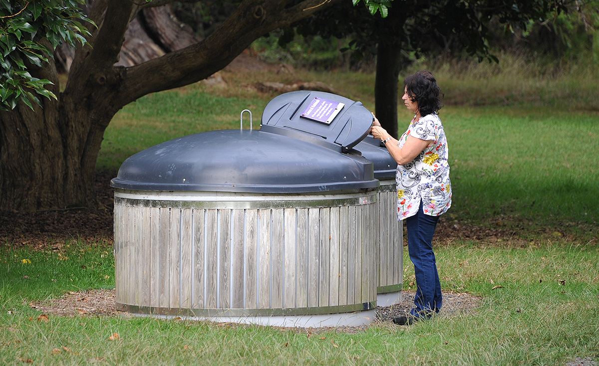Fiona dumping rubbish she found on the beach.