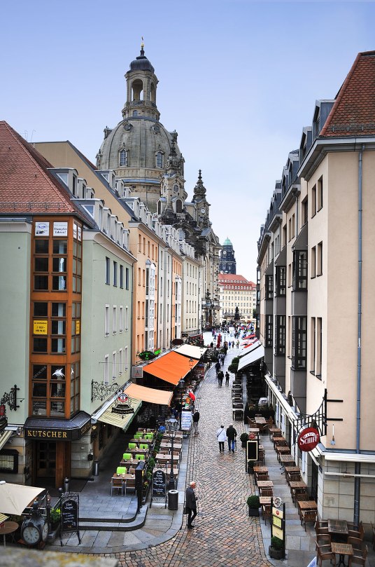 dresden July 16, 2017 1200 × 1812 A City Rebuilt Through to the main square. We had a cuppa at the café on the left corner with the chairs outside.