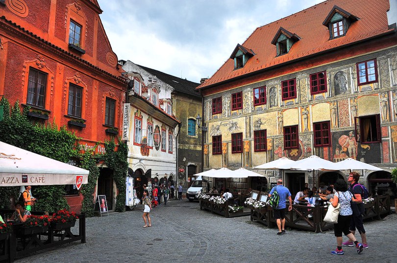 cesty-kumlov July 18, 2017 1200 × 798 One the Czech Republics Hidden Gems One of the Squares. Gary, Fiona and Dianne on the right