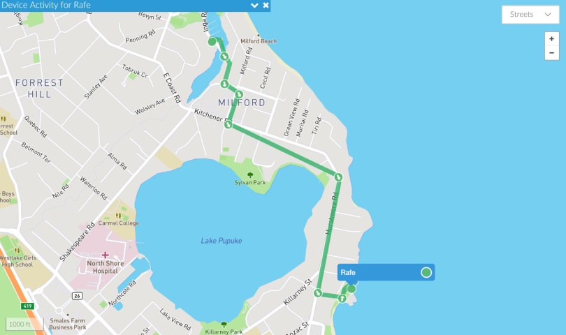 Rafe’s track from the marina to Takapuna.
