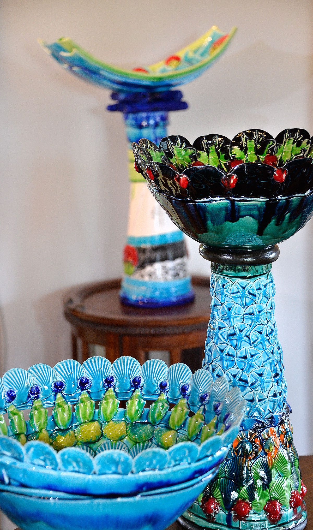 Across the road is an amazing Clay Gallery run by Katie Gold and Owen Bartlett. They have a rustic old barn there covered in all sorts which I thought had to be photographed. The house is amazing and while were there, I managed to get a piccy of Katie with one of her masterpieces.