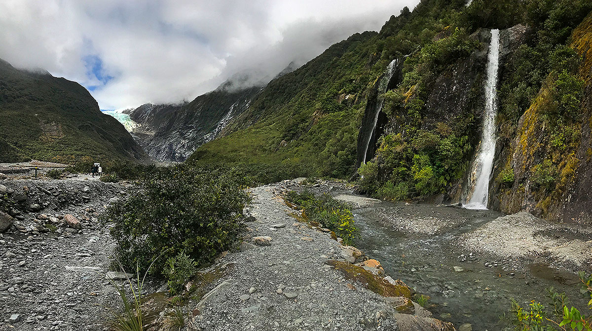 franz October 4, 2017 1200 × 671 Waterfalls and the Glacier The Glacier about halfway up with a waterfall.