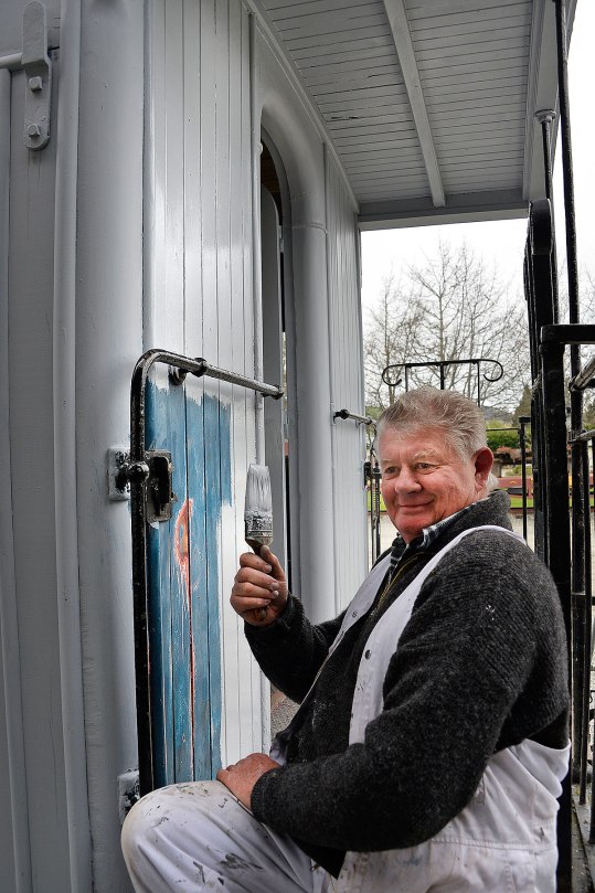 lumsden October 7, 2017 1200 × 1803 Heading down to Railway Country Dave painting the outside of the carriage.