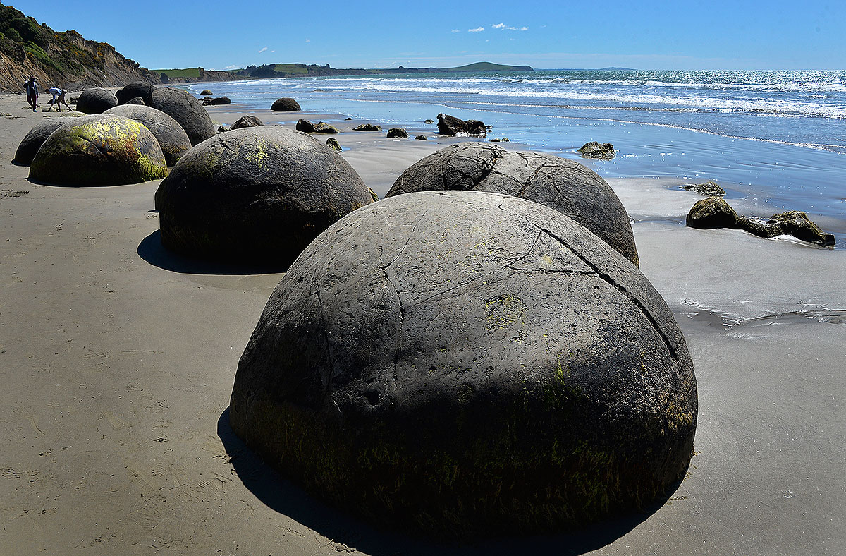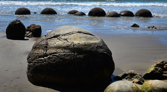 We parked in the huge carpark and wandered down to the beach where there were already a good number of people with their iphones getting piccies of the boulders. These are amazing. Apparently they’re over 5.5 million years old and were made on the sea floor with mud!