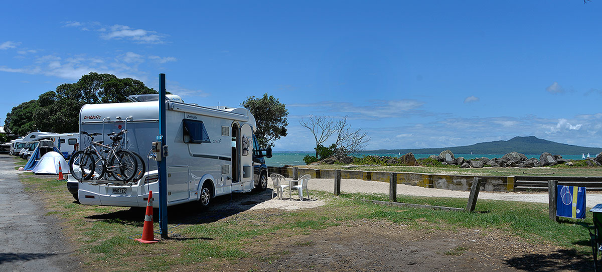 Fiona was asked to step in at her old job in Takapuna for a few days so we thought we’d treat ourselves with a park on the waterfront at Takapuna Motorcamp. Friends Gary and Dianne with their new Niesmann and Bischoff and Ian and Lynda with their Dethleffs XLI joined us too.