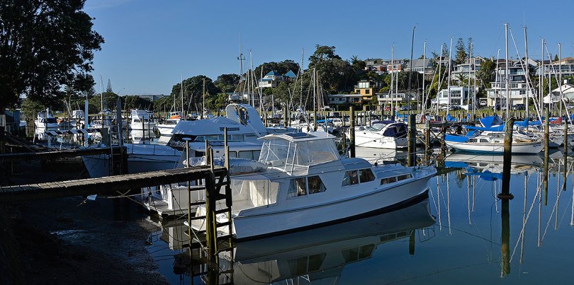 milford January 19, 2018 1200 × 598 Early Magic in Auckland Milford Marina, Rorqual the Whalechaser in the foreground