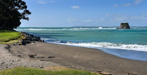 We’d just arrived when the owner Ian popped out to welcome us in. Ian and his wife along with another couple own the complex and have been progressively upgrading it and it looks great. It is run on an honesty system at $20 per van per night, great value and with a view out over the water to Tawharanui Peninsula. There are plans to add Toilets and Shower which are there now but not hooked up and there is a full kitchen and lounge area with a big open fire which would be great in winter.