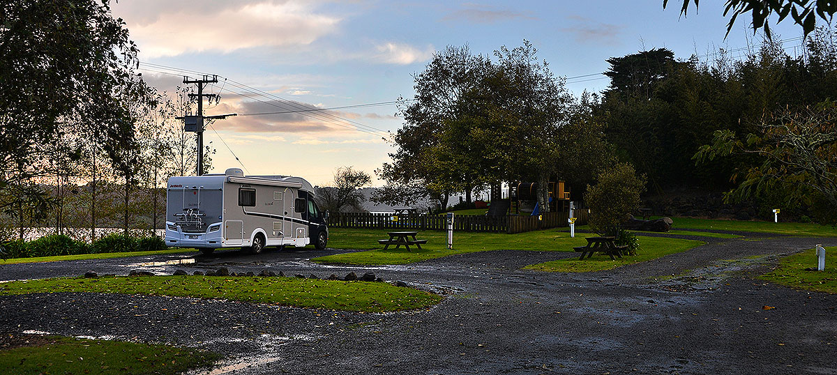 Just along the road is the Matakohe Holiday Park which has had a bit of makeover since we were last there a year or so ago. There seems to be a bit more gravel, and some new playground bits and pieces. The view on a nice day is just sensational and is a great way to wake up.