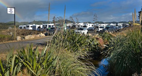 As I came around the last bend before the camp, all I could see was lots of white from Caravans and Motorhomes.. was there going to be room! There were 68 vehicles in the park and it was chocker.