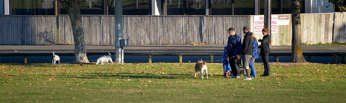 Walking the dogs in the park next door