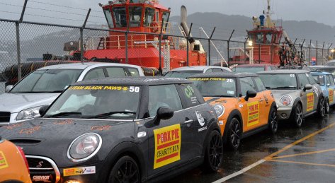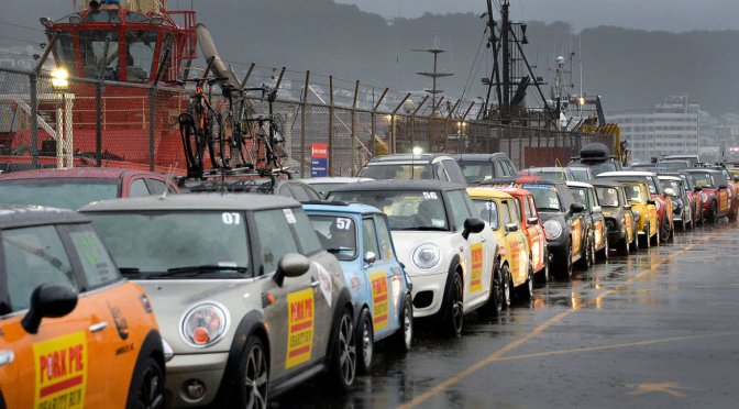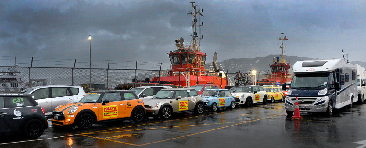 We were first in line arriving at 0630, half an hour before check in. Not long after we checked in, we were joined by some of the 60 odd Minis doing the Kidscan Charity run from Kaitaia to Invercargill over 6 days. Most were dressed up for the occasion with long hair and bright clothing.. a lot of fun.