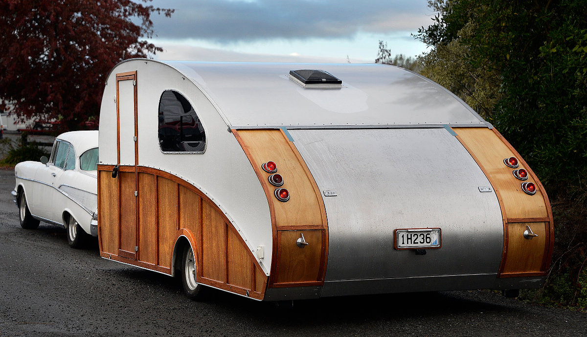 StunningIts roomy too, much bigger than your average teardrop. They have a Queen size bed in it along with a wall of wardrobe and shelves.