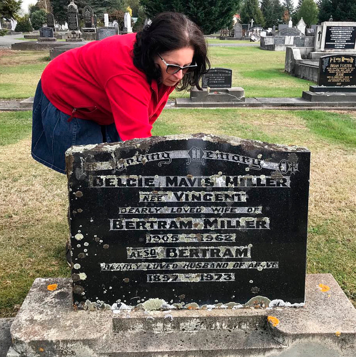 At the cemetary, the headstone was in a bit of a state and you could barely read it so we thought we’d get some potent cleanup stuff and take to it with a stiff brush. It came up really well and looks fantastic.
