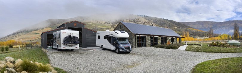 pano2 May 12, 2019 1200 × 364 Alexandra to Clyde River Bike Trail Rafe and Rob and Helens Tracker at their place.