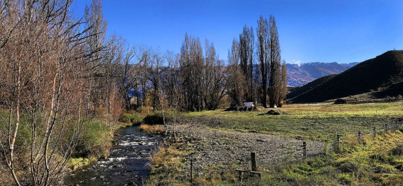 lindis May 22, 2019 1200 × 557 Biking to Lowburn Looking across the trees and stream at the back of Rob and Helen’s place