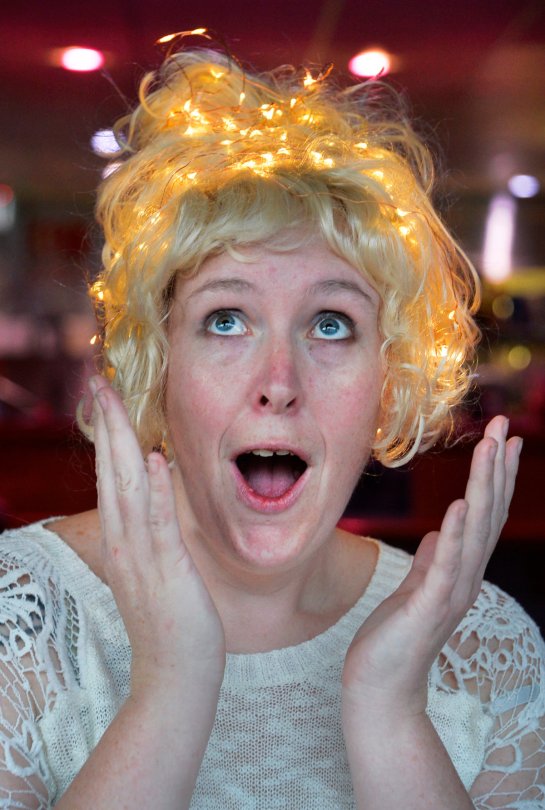 Leigh Bar’s Sarah with her lit Hairdo