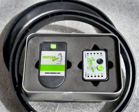 The Kit with the two sensors, the rubber base rings and the gauge.I bumped into Duncan from Apollo as I left the NZMCA Motorhome show and he was telling me about this new Gas remote fuel gauge. It is called a Mopeka.