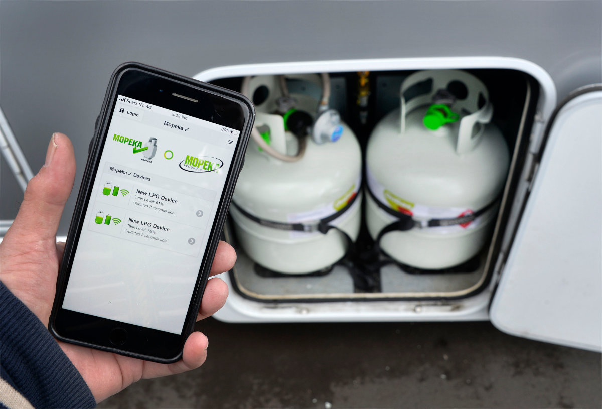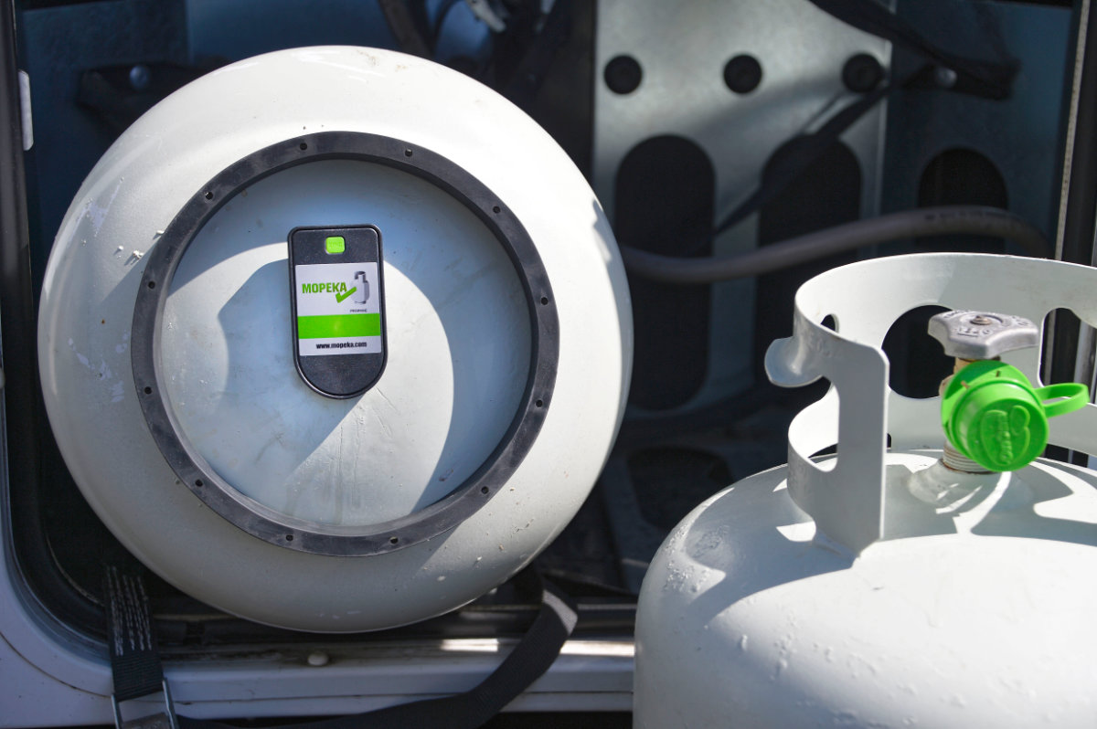 The sensors all connected to the phone appIt works by having two sealed sensors which are each magnetically attached to the bottom of your Gas bottles that send a signal to a remote LED gauge telling you how much Gas you have left in your bottles.