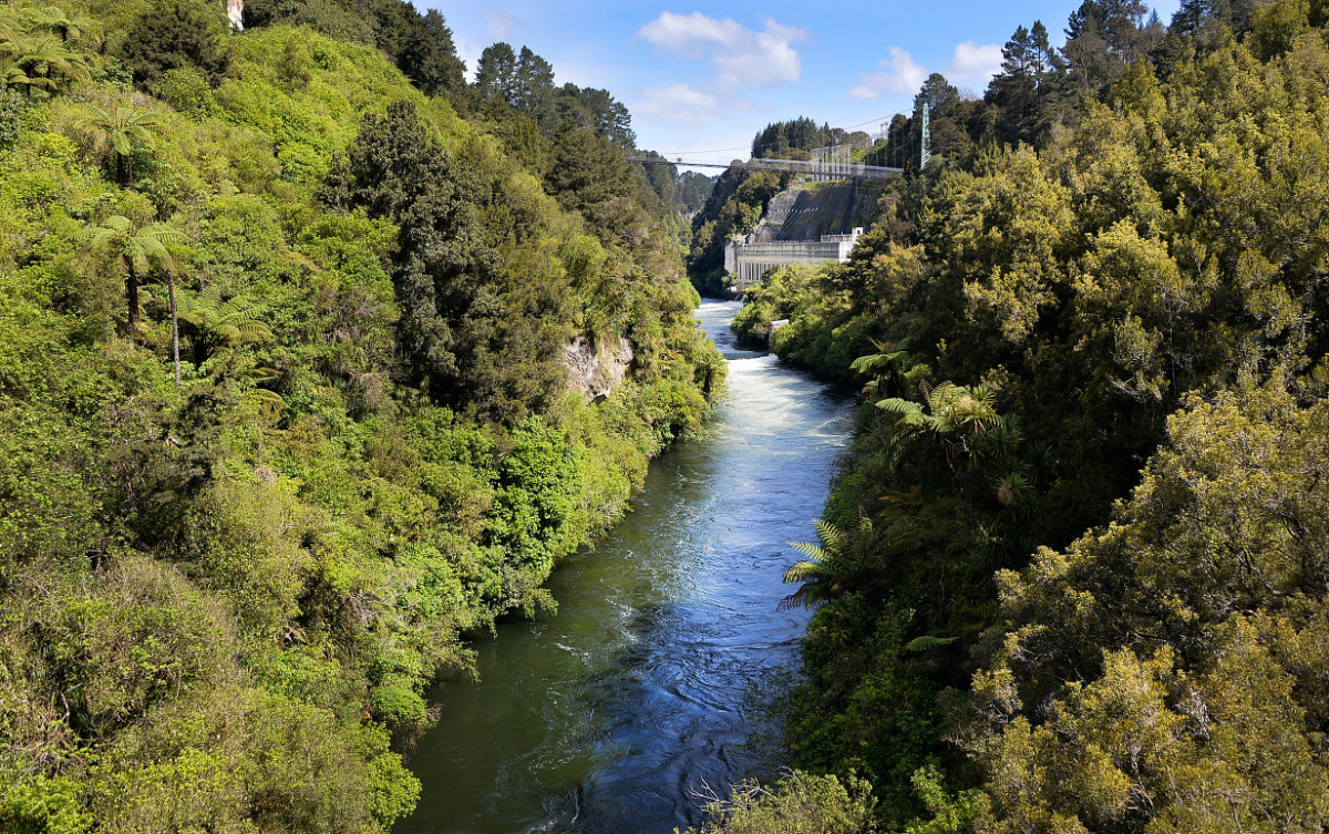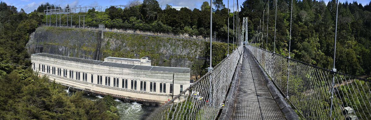 The Swing Bridge was built in the early 1920’s so that workers for the power station could get to work. The power station is the oldest and the largest in capacity and was opened in 1929. It is now under the protection of the Historic Places trust and signs at the site, show the effort that went into protecting it from possible Japanese bomb attack during the war by camouflaging it.