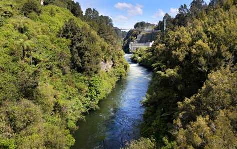 Slightly off the beaten track south of Karapiro but part of the Waikato River Trail is the little town of Arapuni. Its an amazing spot with a really impressive historical Swing Bridge and an old power station built into the side of a hill.
