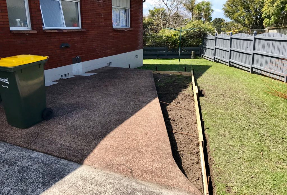 A very good friend of my son Andrew, Ryan and his wife Jordan have done an amazing job. Ryan’s speciality is concrete but he has done a lot in the landscaping area too so we’re really chuffed with what we’ve got on a small difficult site. Ray helped too with redoing the fence and the raised gardens. A great job folks.