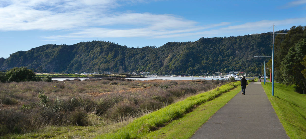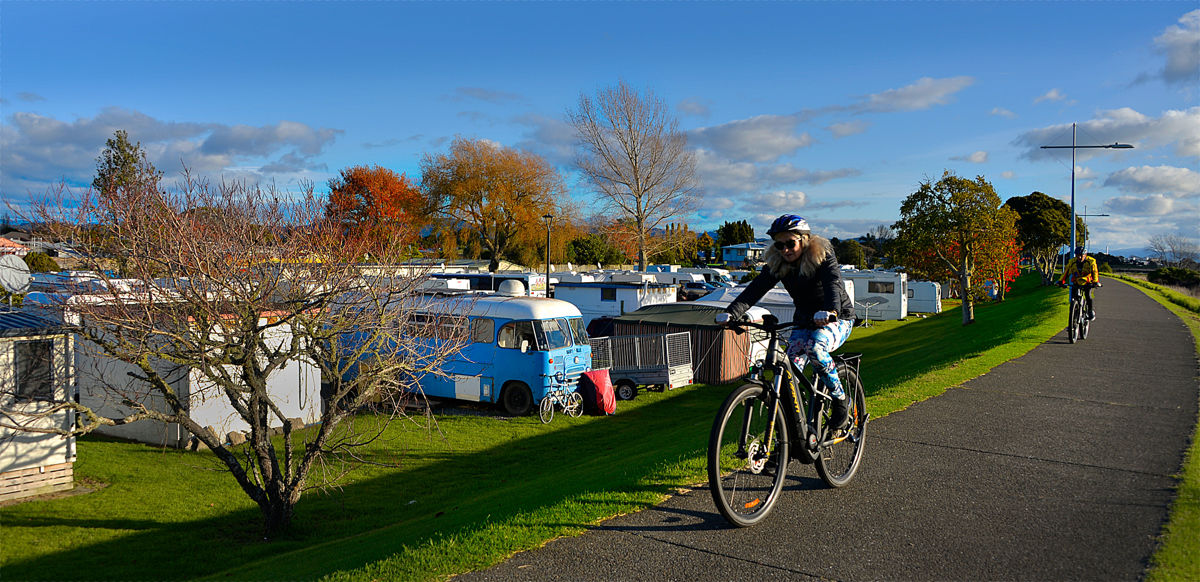 Whakatane Holiday Park is pretty much right in the centre of town on the edge of the river, protected by a raised stop bank with a walking track on top which the locals seem to really enjoy.