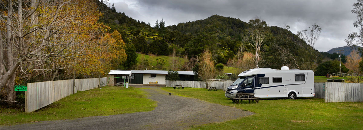 hahei1507004 July 15, 2020 1200 × 432 Birds, Trains and Motorhome parking The motorhome/caravan parking with the Toilets behind
