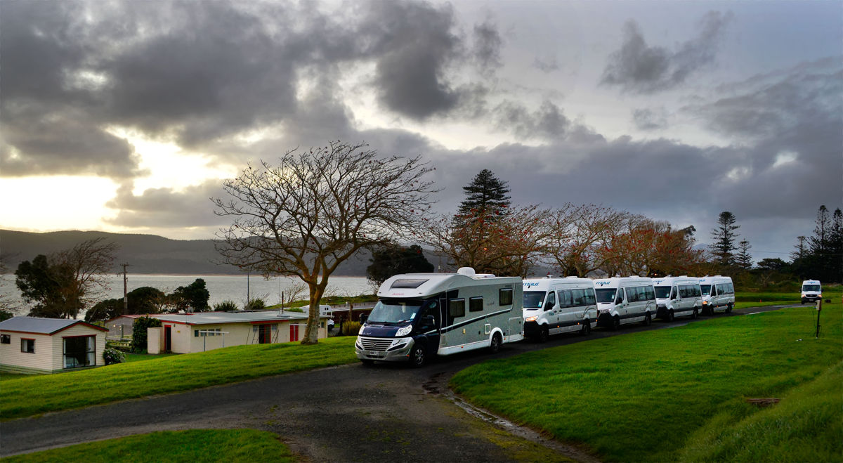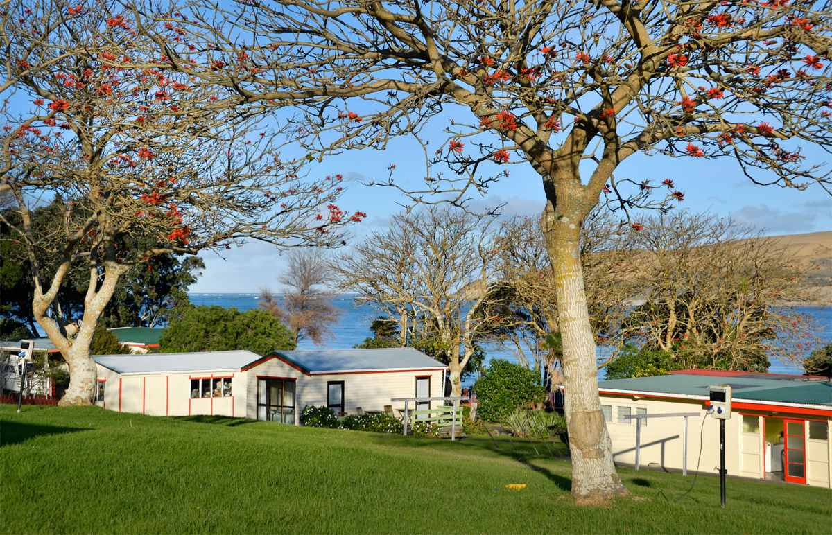The park is made up of terraced parking areas with some cabins as well all looking over the lovely sandhills at the entrance of the Hokianga harbour. Great views.