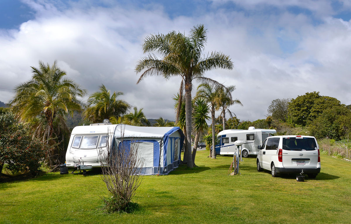 coromandel2809264 October 27, 2020 1200 × 768 Peter and Margie’s Award Caravan Top Spot, Peter and Margies caravan with Rafe behind.