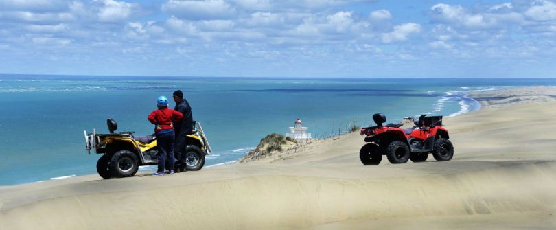 poutu0301096 January 4, 2021 1200 × 497 Poutu Marine Hall Campground Fiona nd John with Lighthouse behind