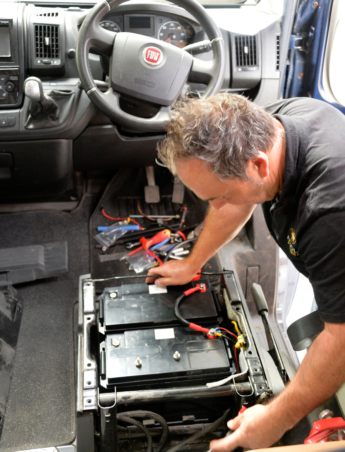 Thorsten was the technician on the job and got into taking Rafe’s seat out to get at the batteries underneath.