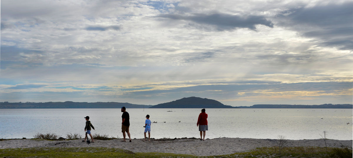 We had just finished lunch with friends in the carpark on the Rotorua waterfront when we found out that they had arrived and checked in so we were off to catch up with them back at the park.
