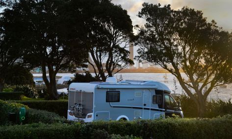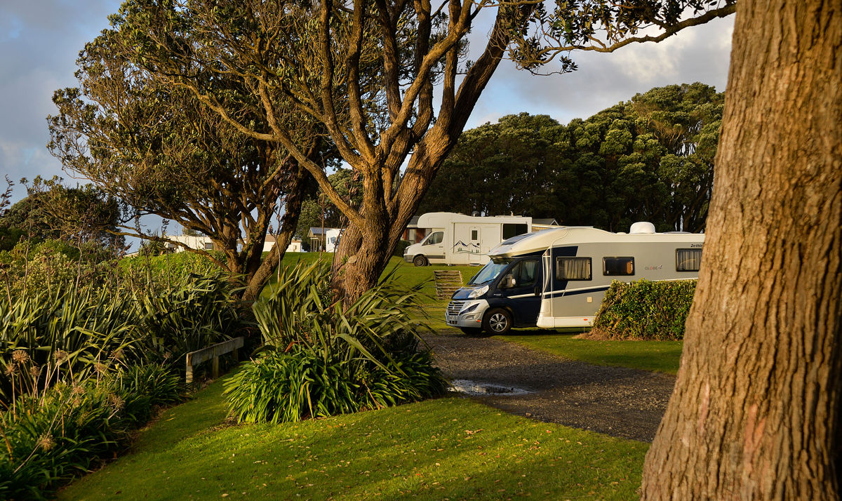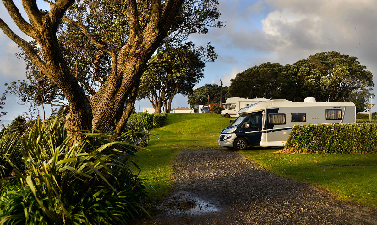 I trundled off to the first of two sites she gave me to look at … the first I checked out on foot to make sure it was solid as it was grass at the top of the cliff looking out over the port. Very nice spot but I was concerned about the grass and the water with Rafe’s 4.4 tons odd. I tried parking on it and went to move back again and I basically wheel spun to get back to the tar seal road behind.. scary stuff.