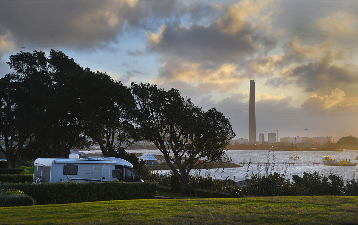 I checked into Belt Rd campground in New Plymouth, where I met Nadine who was holding the fort. She very kindly checked me in to a waterfront site with a view which I was a bit apprehensive about due to a wind and rain warning for that night. Very nice of her to offer me that site though 🙂