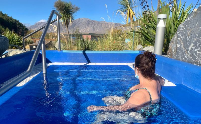 si2022-phone067 May 3, 2022 1200 × 740 Stars and Hot Pools at Tekapo Fiona in the pool overlooking Lake Tekapo