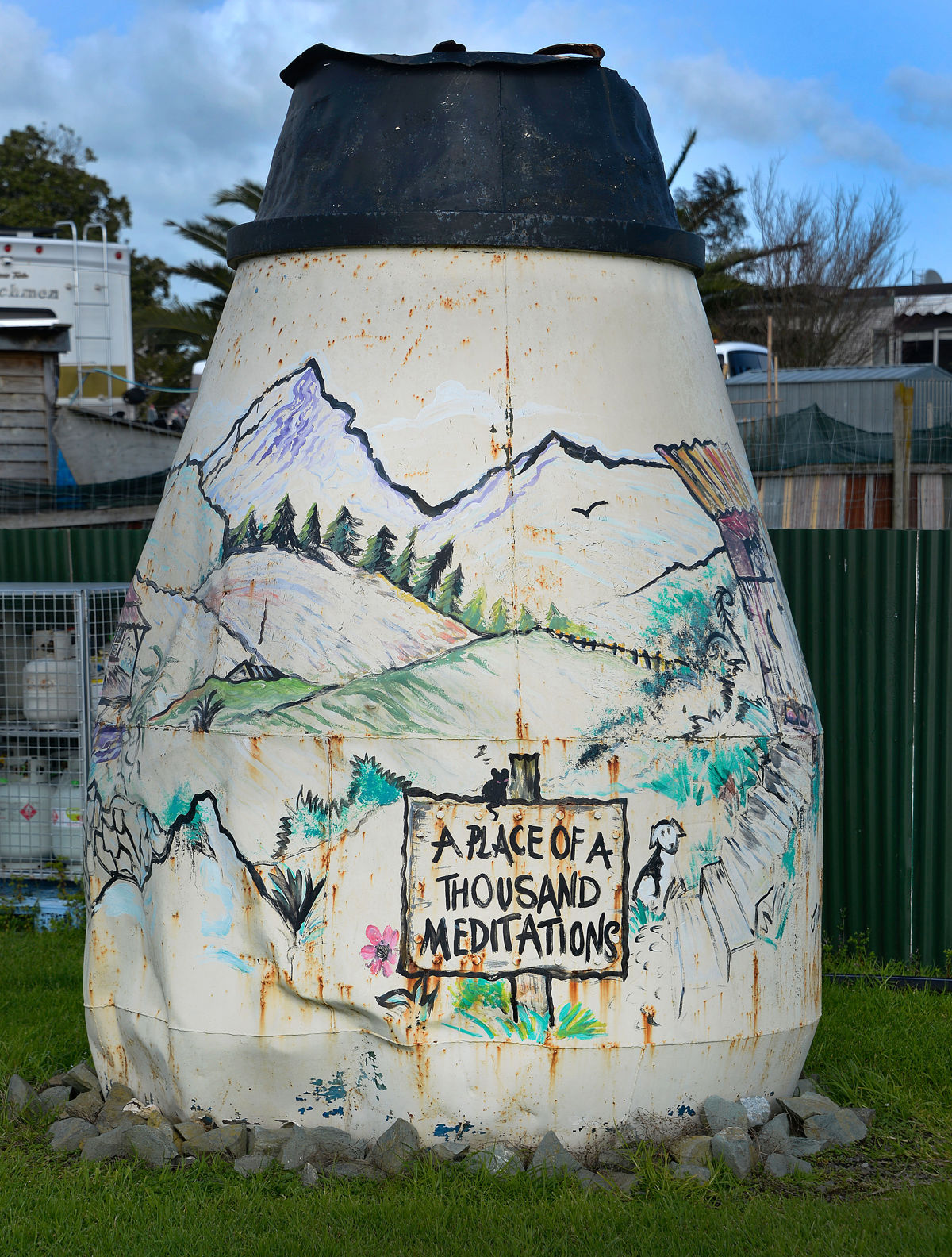 pamamoa2807073 August 1, 2022 1200 × 1584 Wild in Papamoa Ex Concrete Mixer barrel as a garden ornament.