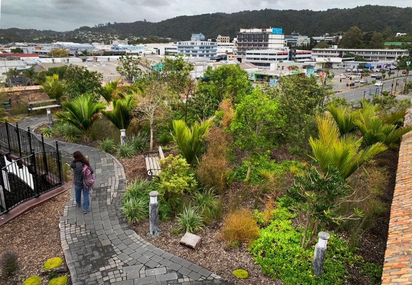 reinga1704531 April 20, 2023 1200 × 832 The Hundertwasser Art Centre From the tower out over the roof top garden towards the city.