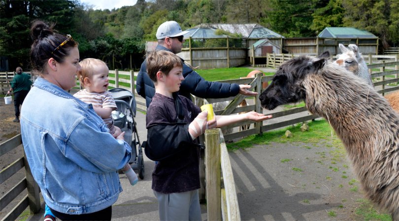 rotorua011023097 October 25, 2023 1500 × 835 The Grandkids in Rotorua Jenna, Archie, Ayden and Drew with the Llamas
