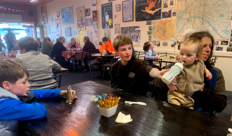 rotorua011023110 October 25, 2023 1500 × 884 The Grandkids in Rotorua Liam, Ayden, Archie with granny Fiona at the French cafe